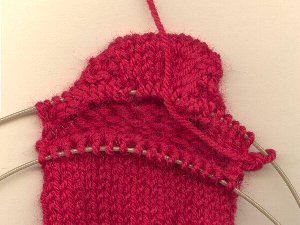 up with 28 stitches on the needle counting both gusset’s and the heel