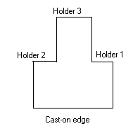Fold holders #1 and #2 toward each other to form a circle with right sides facing out. The beginning and ending edges of your flat knitting now adjoin one another and the right side of the sock is on the outside.