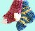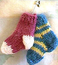 | These socks are an example of our Socknitters symbol: One purple sock with white heel and toe and one of any design for swapping with other members. |