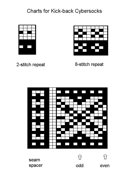 For those who want a more challenging pattern, I'll give separate instructions for designing a sock using the the more complex, 12-stitch repeat pattern. You're welcome, of course, to substitute a different one of your own.