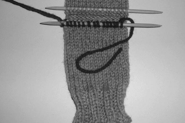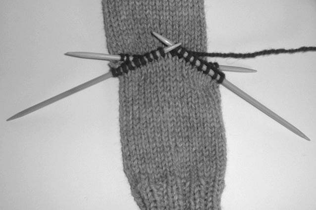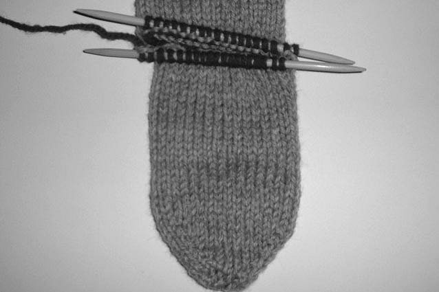 sample sock’s heel is decreased to 12 stitches.