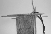 STEP 14: Slip stitches from needle 1 on to needle 2, so the stitches are equally divided on 2 needles. Cut yarn, work kitchener stitch to weave heel closed, just as you would a toe on a top down sock. Weave in loose ends.