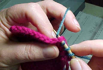 perfect this selvage in no time."Below you will find photos showing how to pick up stitches using the single loop and with both loops on the edge of the heel flap.