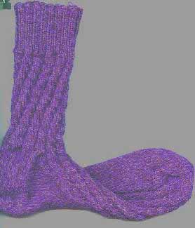 David knit 'Hamer's Humdingers -- Fulled Socks' for the MMST. The Humdingers are a variation of the famous Joan's Two-Strand Wool-ease socks but are made out of bulky wool knit on large needles. David says he would rate the pattern as quick and easy, perhaps not a first or second sock, but easily a third or fourth. David mentioned that gauge is not critical when knitting these socks, as you shrink them to fit and he says each sock took less than six hours to knit. I agree. They are Humdingers! http://www.benefitslink.com/knit/patterns/fullsock.shtml