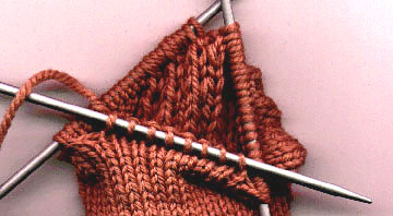 You now knit (and purl!) back on forth on these small flap stitches until it is long enough to pick up your additional stitches. Wrong Side Rows: slip 1 (as if to purl), purl to the end Right Side Rows: slip 1 (as if to purl), knit to end.