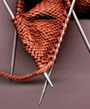 Note that I did say approximately one-sixth of the stitches - if you are knitting for someone with a rather wide heel, you might want to make the small flap a couple of stitches wider and pick up one less stitch on each side. Conversely, for a narrower heel, you could make the flap on a couple of stitches less and pick up an extra stitch on each side.