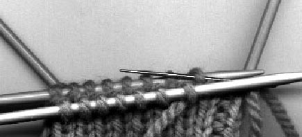 back needle (a purl stitch) from right to left. Slip the stitch off the knitting